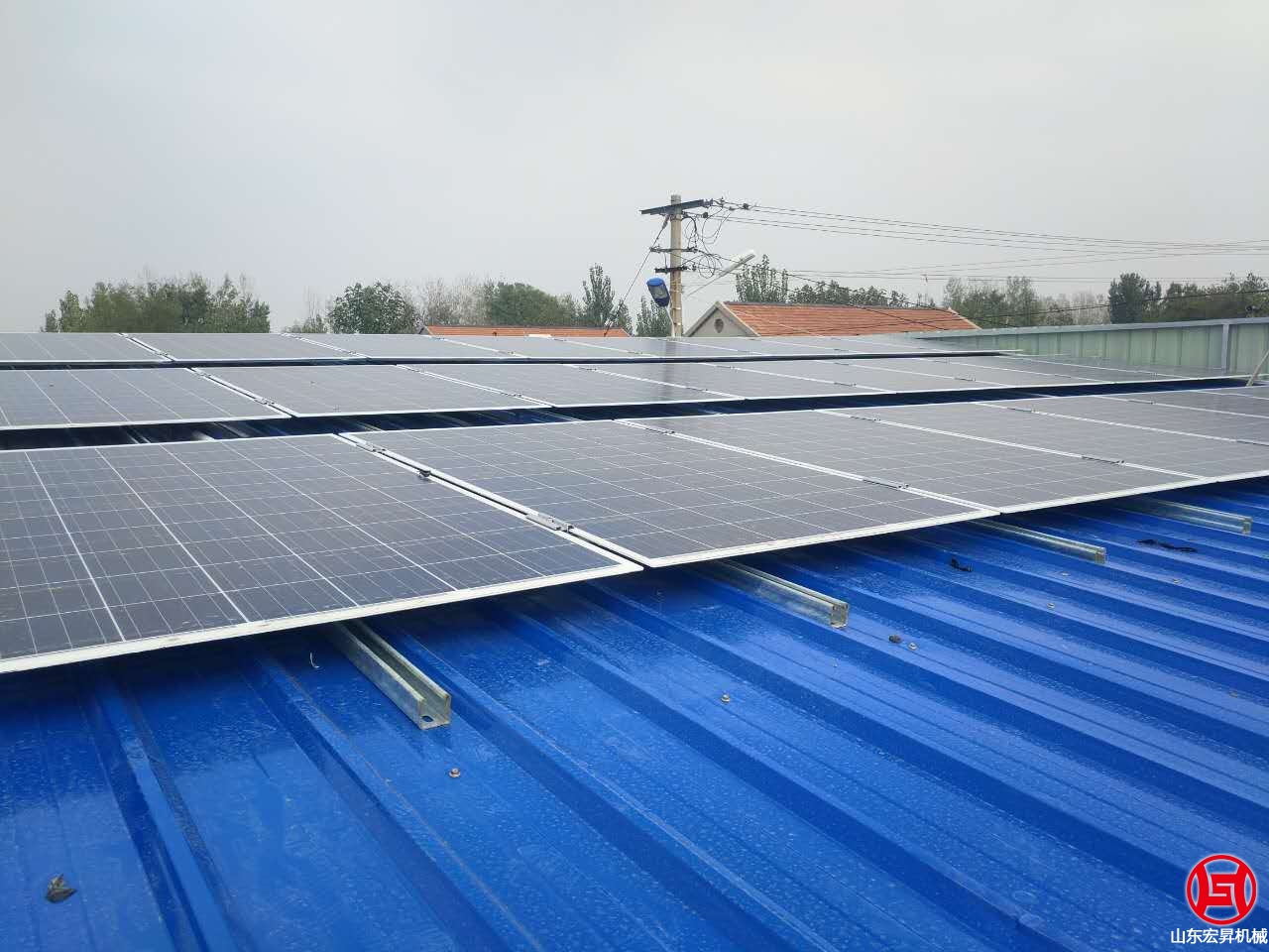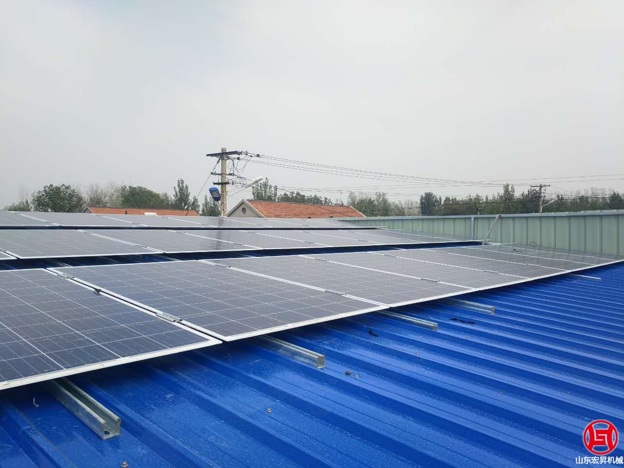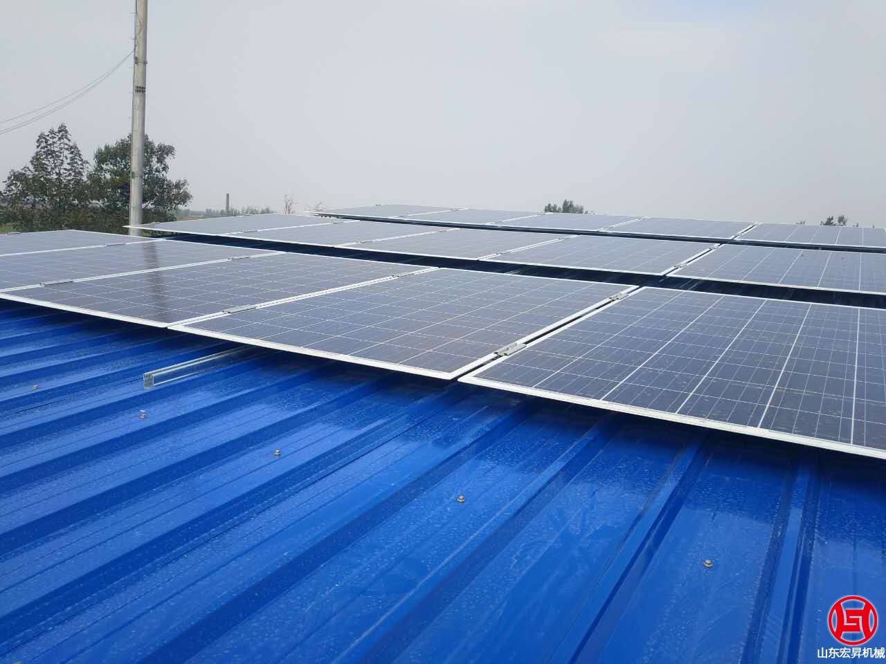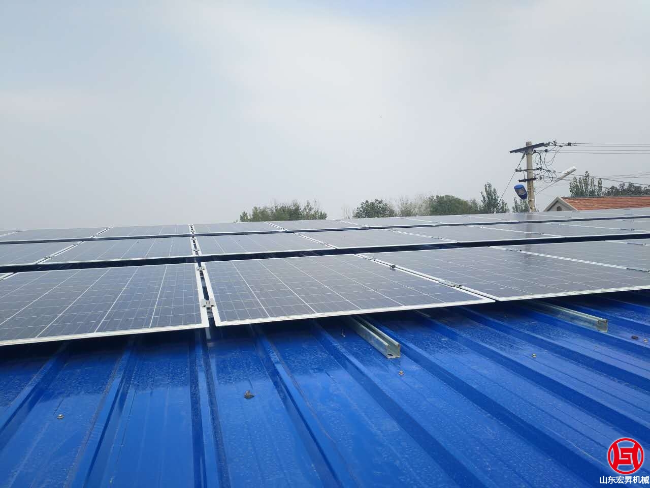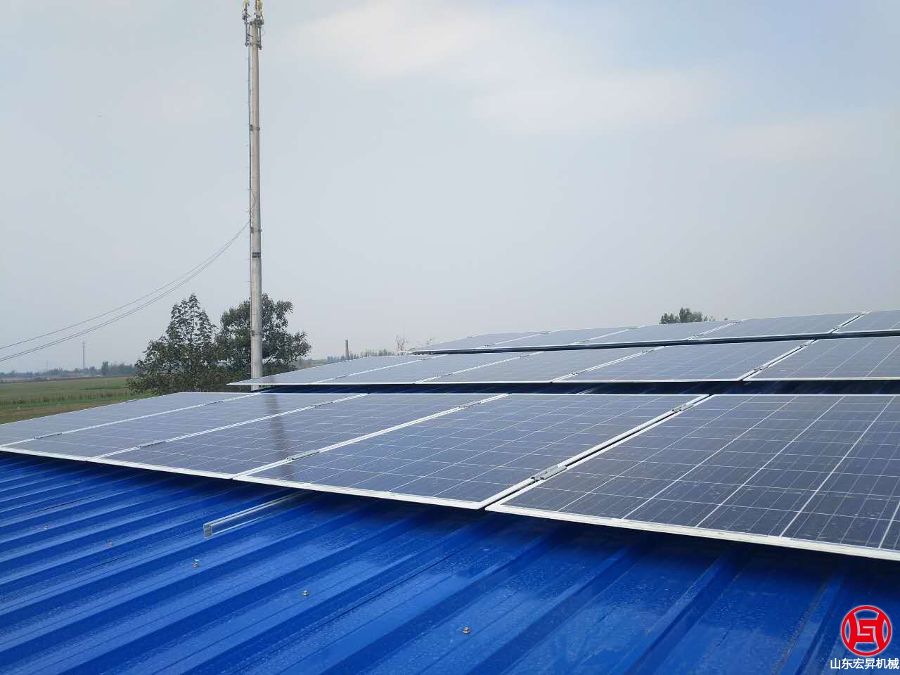 2016年10月,山東宏昇中標峽山區(qū)太保莊街道的扶貧項目,為某村搭建彩鋼瓦鋼結構大棚一個,10KW光伏發(fā)電系統(tǒng)一套,本系統(tǒng)采用265高效率A級雙玻組件,壽命可達30年。7oL山東宏昇機械科技有限公司