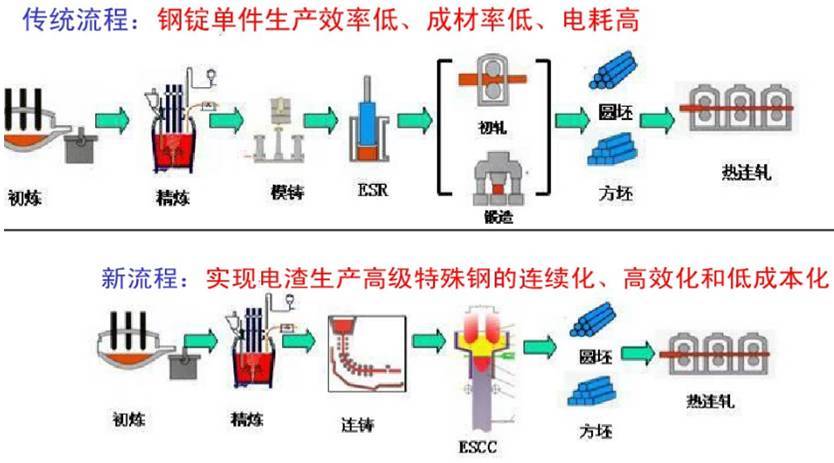 為解決電渣重熔技術(shù)電耗較高、批量少管理不便、生產(chǎn)效率低等局限性特點(diǎn),冶金工作者也在不斷的創(chuàng)新和完善電渣重熔技術(shù),如電渣連鑄技術(shù):8qd山東宏昇機(jī)械科技有限公司